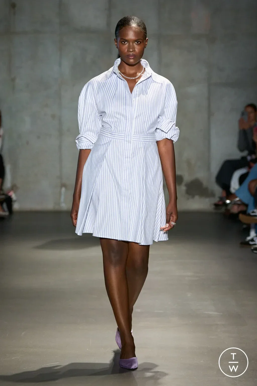 Pour le printemps-été 2026, la chemise-robe s’impose comme une pièce phare, mêlant élégance et modernité. Les coupes droites ou légèrement évasées structurent la silhouette, tandis que les longueurs midi ou courtes apportent légèreté et mouvement. Les créateurs privilégient des matières fluides comme le coton, la popeline ou le lin, parfois enrichies de fines rayures ou de textures délicates. La palette oscille entre tons doux : blanc, bleu ciel, lilas et couleurs plus affirmées comme l’orange ou le violet, pour une allure fraîche, contemporaine et facile à porter.